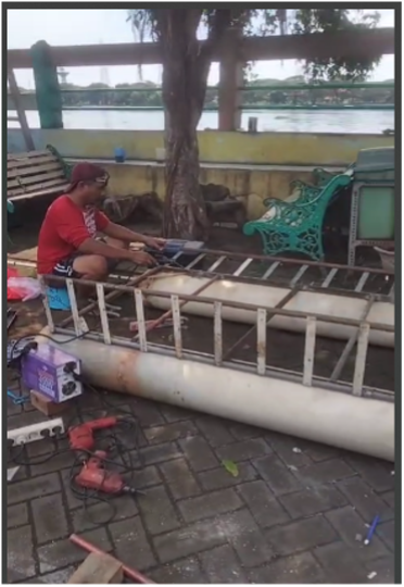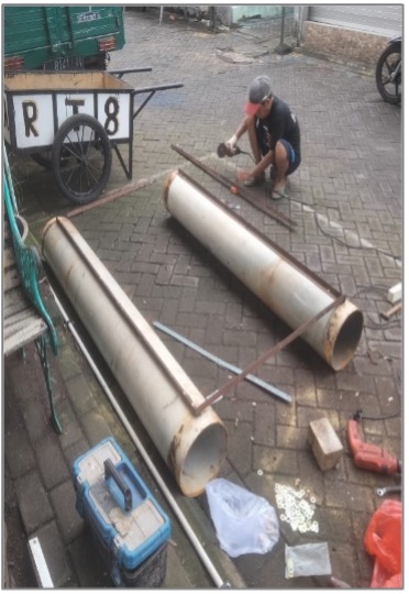 “Pembuatan ponton ini diawali dengan perencanaan bentuknya, kemudian menentukan beban yang ditanggung sehingga dapat ditentukan kebutuhan dimensi ponton yang diperlukan,” kata Soebagio, ketua Penmas dalam proyek ini sekaligus sebagai Ketua Pusat Studi Lingkungan UWKS.