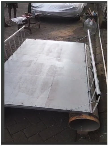 Ponton catamaram ini dirancang untuk meningkatkan efisiensi dan keamanan operasional kerambah lele di Boezem Morokrembangan. Dengan dimensi 2,5 m x 1,2 m, ponton ini menggunakan pipa PVC berbentuk silinder dengan diameter 10 inch yang diletakkan di kanan-kiri dengan panjang 2,5 m.